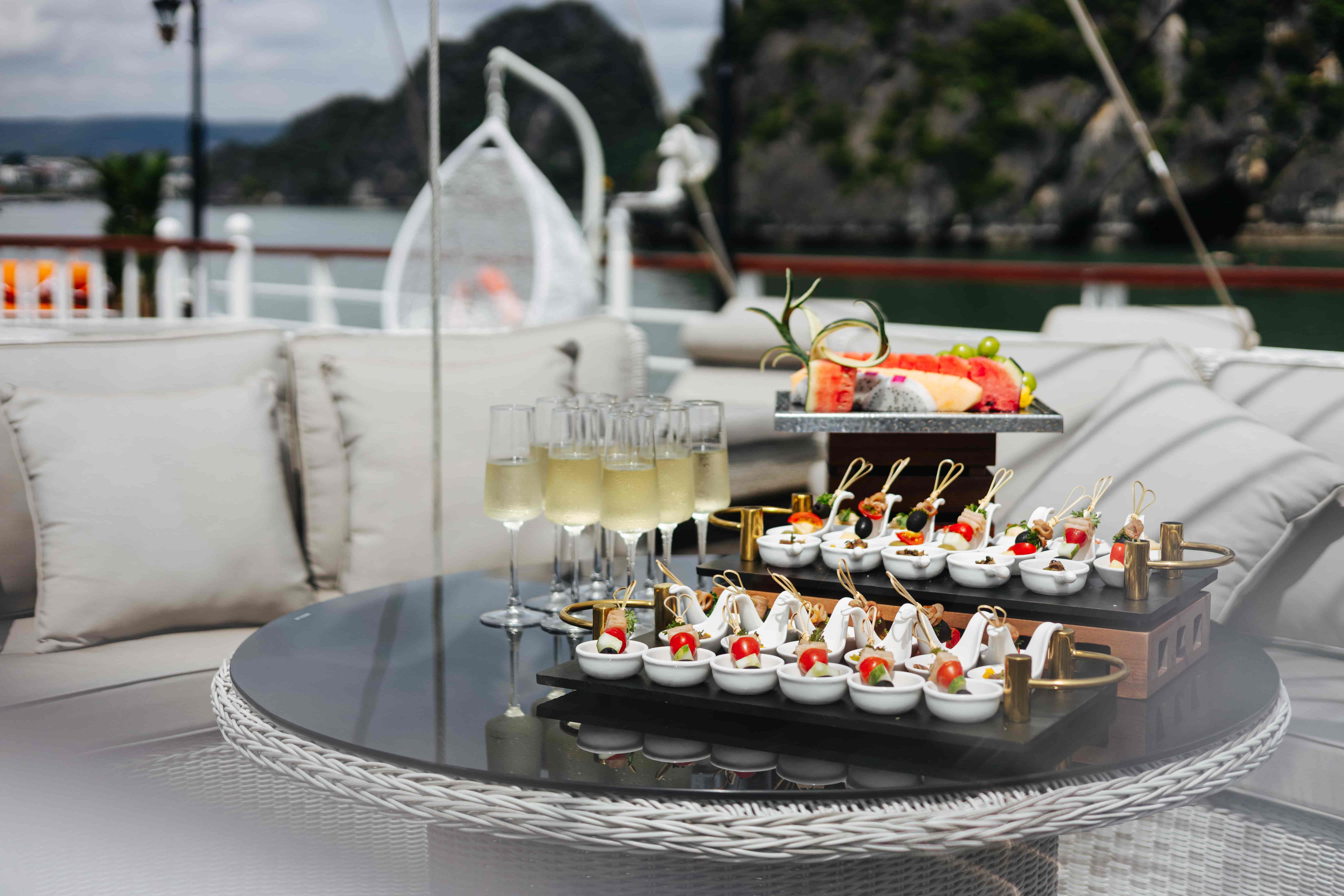 Enjoy Canapé party and live music band on sundeck while cruising in a mid of magnificent beauty of Halong Bay or have a self-immersion in our relaxed four seasons Jacuzzi.